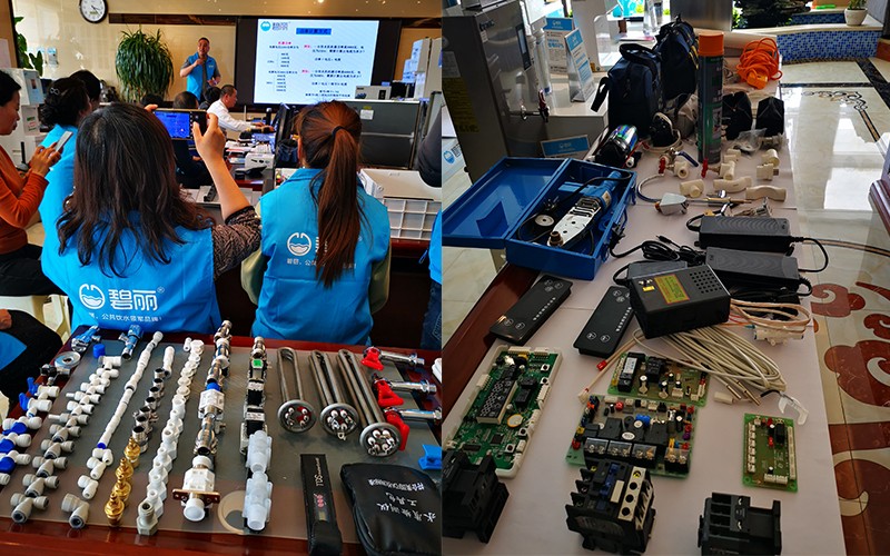 本次培訓會議極具針對性,從理論與實踐入手,對碧麗品牌的服務意識、產品知識、實操演練等多項內容進行了講解。碧麗技術人員結合自身實際工作經驗,對設備配件的分類以及性能特點進行了詳細分析,著重講解了設備的日常維護以及常見故障排除。
